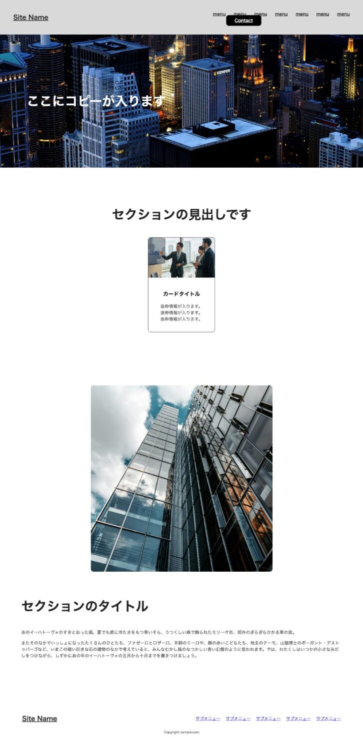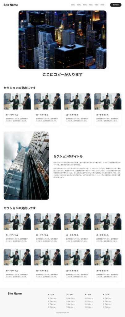 - ヒーローエリアの配置(横いっぱいじゃない)、コピーの位置(画像の前面に配置されていない)